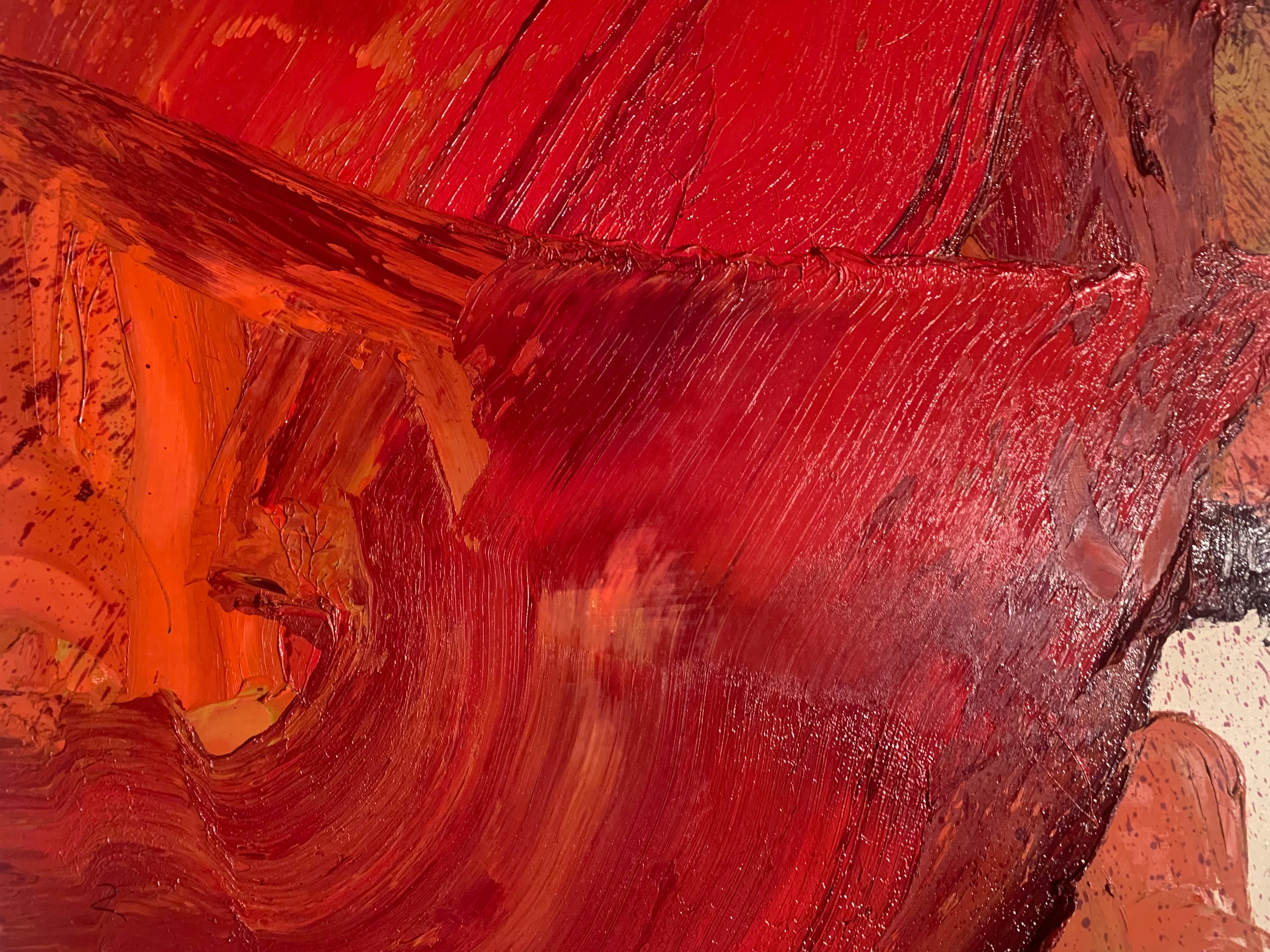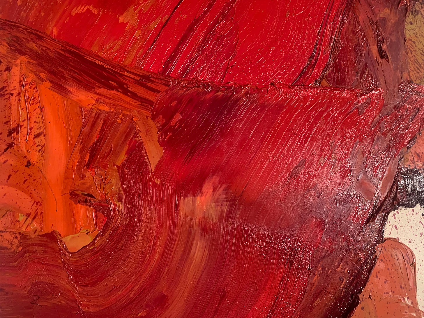 Just beyond the asteroid belt, Jupiter spins slowly, surrounded by faint rings. Jupiter’s atmosphere is the largest in the solar system. Jupiter’s atmosphere presses down against the planet with ten times as much force as the Earth’s atmosphere. Jupiter’s atmosphere is thick, cloudy, and characterized by violent storms and winds. One storm is so strong that it forms a red spot larger than earth, a spot that has been spinning counter-clockwise for at least 200 years.